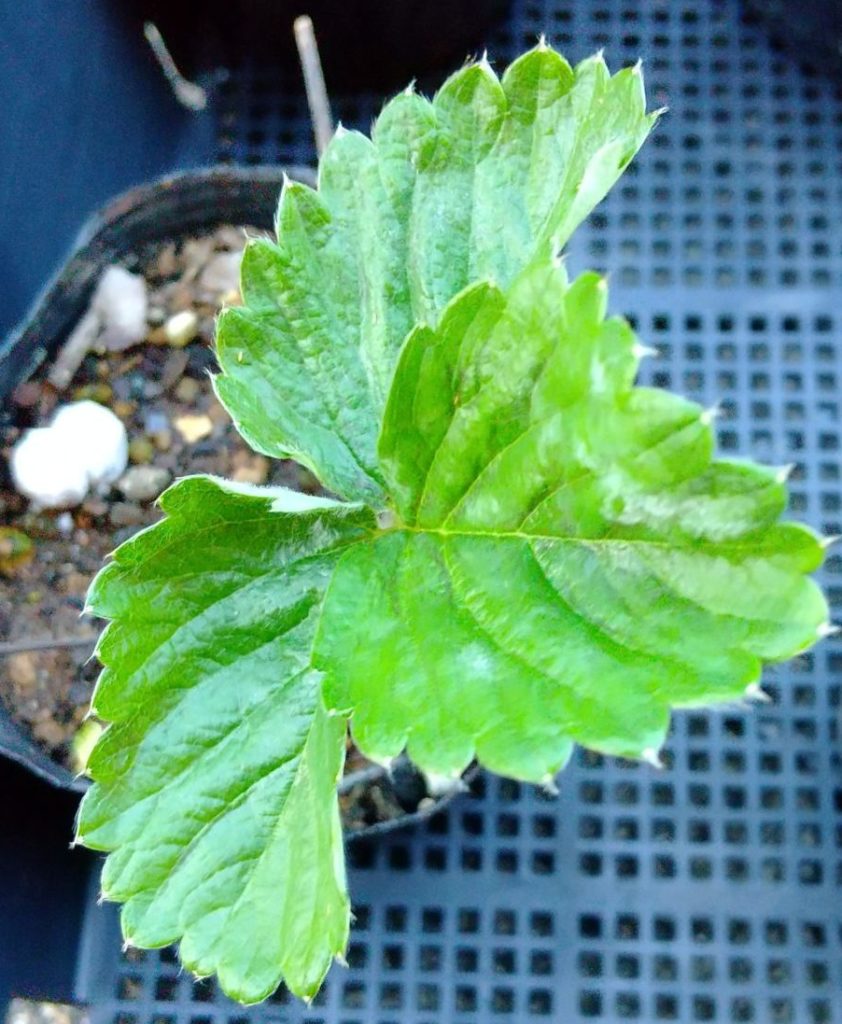 イチゴの葉が反り返ったらうどん粉病を疑ってみてください。