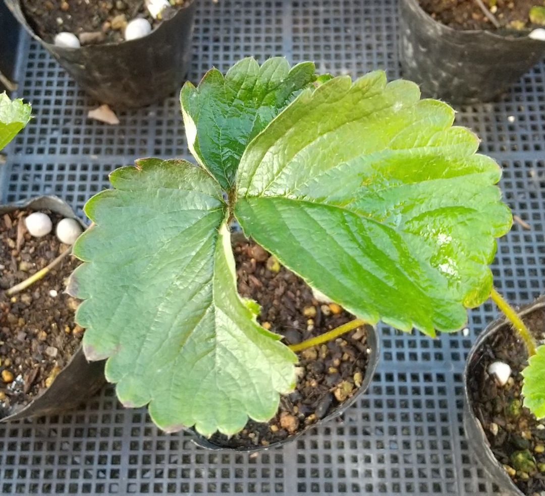 イチゴの葉が反り返る原因が分かるまで(うどん粉病)